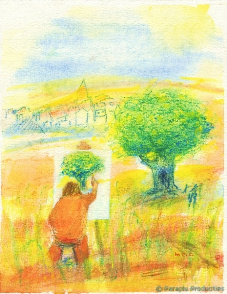 Verkoperij van schilderijen en illustraties.